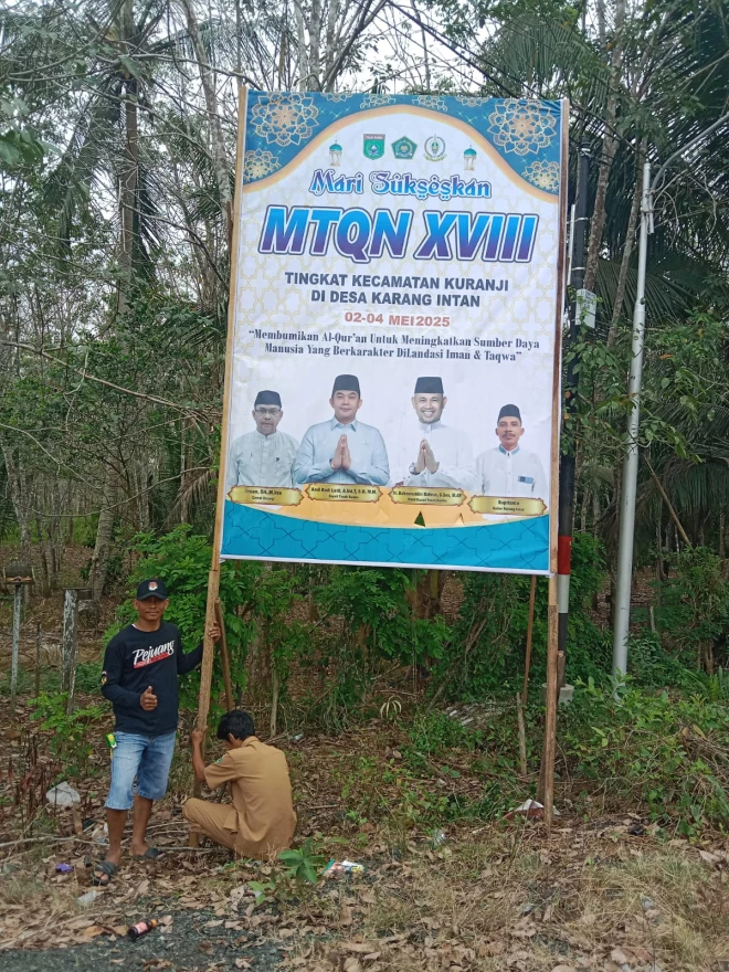 Karang Intan - Pemdes Karang Intan melakukan pemasangan baliho pelaksanaan MTQN ke 18 Tingkat Kecamatan Kuranji di Desa Karang Intan, upaya ini dalaksanakan guna menginformasikan seluruh warga Kec. Kuranji agar antusias dalam penyambutan event Islamic ini guna mensyiar kan Agama, terdapat beberapa titik pemasangan, yaitu di Desa Karang Intan dan Desa Ringkit.
